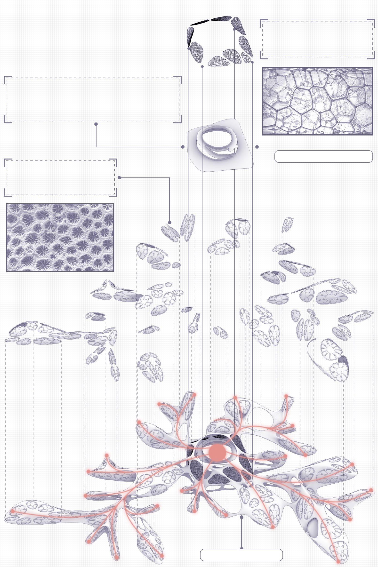 overall functional layout of the building follows the growth pattern of coral, radiating from the relax