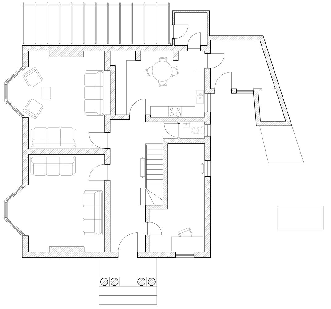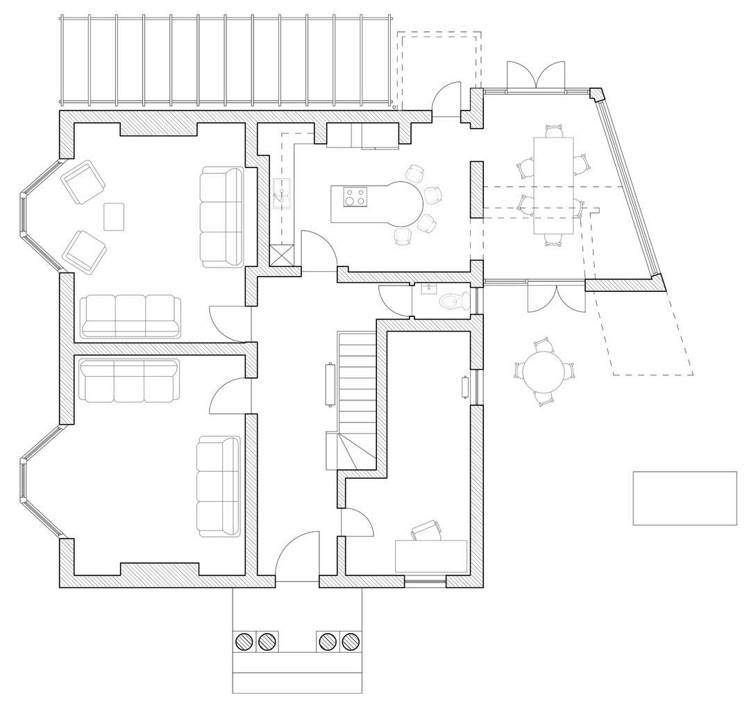 A site appraisal and measurements were completed and an existing floor plan was drawn from this. Iterations were created and discussed with the client, and the chosen design was used for the final pre-planning application.