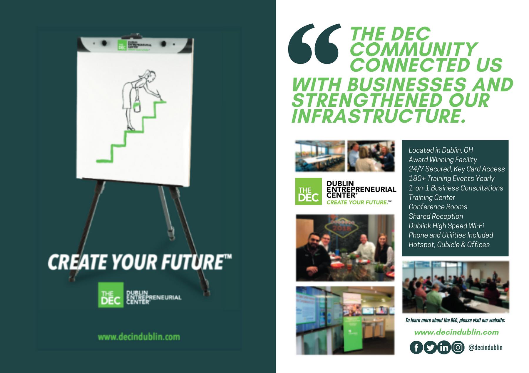 Celebrating One Non-Profit Organizations Jurgita Fumo 614-656-2173 info@celebratingone org www celebratingone org Mark and Shelly Photography Photography and Videography Mark Thomas markandshellyphotography@gmail com www markandshellyphotography com The Dublin Entrepreneurial Center (The DEC) COhatch Office Space Chaz Freutel 614-989-2429 chazfreutel@yahoo com www decindublin com Wealth Impact Nation Podcast Dara Salas 614-946-2882 darasalas@wealthimpactnation net www facebook com/wealthImpactnation Jae Enterprises Promotional Products Jeff Wasserstrom 614-760-0026 jeffwass@yahoo com www jawenterprises net Real Estate Eric Milisavljevich 740-417-3665 eric4short@gmail com www eric4short com Red 1 Realty