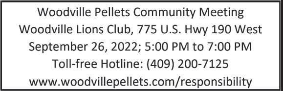 CMYK easttexasnews.com Page 2A | TYLER COUNTY BOOSTER | Thursday, August 25, 2022 2577 N. Wheeler | Jasper 409-384-5781 People you can talk to... Professionals you can depend on... 113 West Holly | Woodville 409-283-8218 FM 1414-Chapel | Burkeville 409-565-2216 Tyler County’s newest Funeral Home Proctors Mortuarywww.proctorsmortuary.com 409-331-1322 | 511 S Pecan, Woodville (936)225-3596 • 2120 N. Raguet Lufkin, TX 75904 www.partinmonument.com Monuments aren’t just a marker,- aren’t just a marker,they’re a reminder of life and memories taking care of memorial needs for over 80 years.
