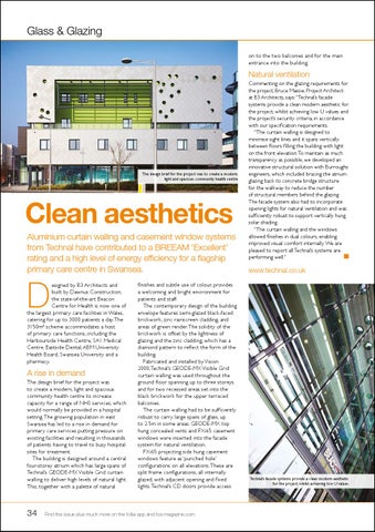 Clean aesthetics Aluminium curtain walling and casement window systems from Technal have contributed to a BREEAM ‘Excellent’ rating and a high level of energy efficiency for a flagship primary care centre in Swansea.