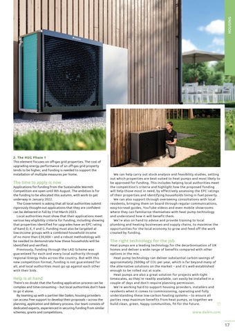 The right technology for the job Heat pumps are a leading technology for the decarbonisation of UK homes and deliver a wide range of benefits compared with other options in the mix. Heat pump technology can deliver substantial carbon savings of approximately 2600kg of CO 2 per year, which is far beyond many of the alternative solutions on the market – and it’s well-established enough to be rolled out at scale. Heat pumps are also a great solution for projects with tight timescales, as they’re readily available, can easily be installed in a couple of days and don’t require planning permission. We’re working hard to support housing providers, installers and residents when it comes to commissioning, operating and fully understanding these low-carbon heating systems – to ensure all parties reap maximum benefits from heat pumps, as together we build clean, green, happy communities, fit for the future.