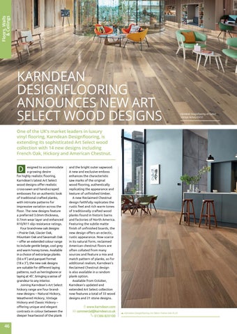 KARNDEAN DESIGNFLOORING ANNOUNCES NEW ART SELECT WOOD DESIGNS One of the UK’s market leaders in luxury vinyl flooring, Karndean Designflooring, is extending its sophisticated Art Select wood collection with 14 new designs including French Oak, Hickory and American Chestnut.