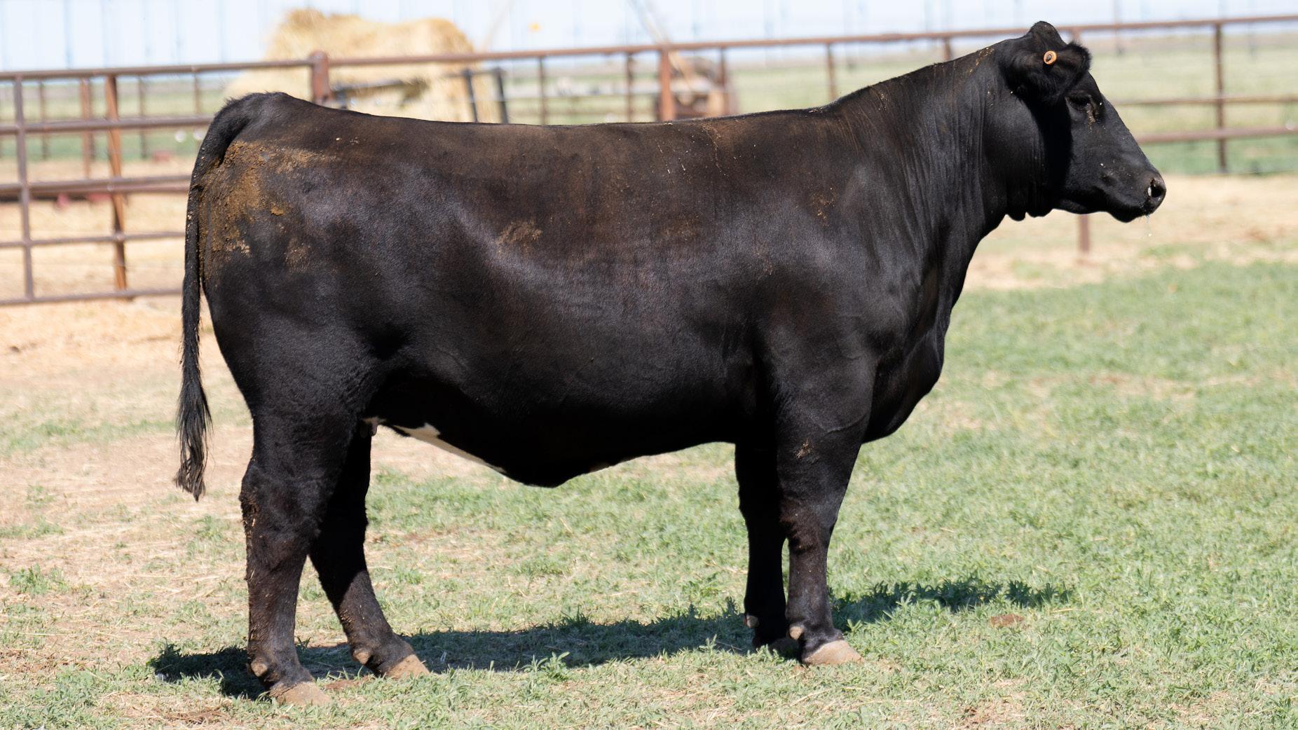 MY KIND! This Style daughter has the look! I’m here to tell ya, you’ll have to drive the wheels off a new truck trying to find one with a skull shape and neatness of neck and chest as good as this one. Coal black hided and running gears that will satisfy the toughest critic. Bred to raise steers or heifers and was extremely hairy this winter. Study her video online and look her up on sale day, we guarantee ya she’s worth the trip to Hereford alone.