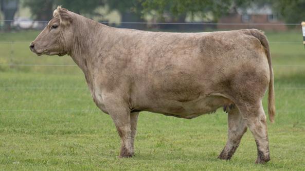 Wicked animal! Her lines are something out of a coloring book! Beautiful headed, long necked, great backed, swoopy bellied, big hip, and big feet and legs that work oh so well! Study the details; her tail head sits in her right, and her shoulder transitions into her for rib seamlessly! There’s so many good things about this one! Throw the book at her and you won’t be far off! 1OAK x Monopoly allows you to use about anything you’d like on her, and she’d respond with a real show calf! She’s special! LOT 105 • BM 116 2-05 • SPRING 2022 • THC PHAC DSF • CROSSBRED SIRE: CHOSEN 1 • DAM: CERVESA AI: MAY WE ALL • PE: SPANKY: 10/10 - 1/8/24 • PREG CHECK: 4/3, 6 MONTHS, DUE 7/15/24