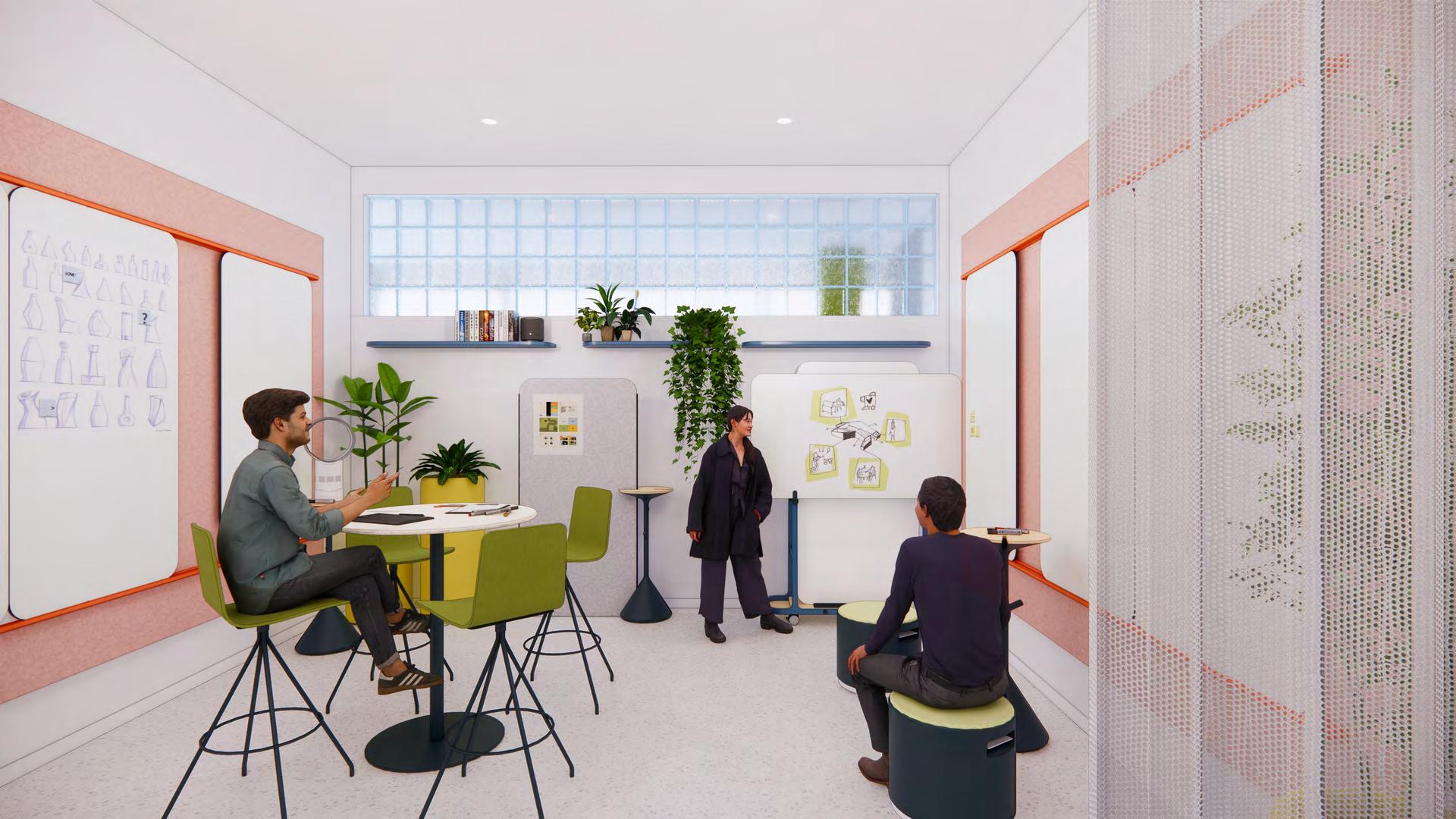 While the workstations along the main circulation paths for ease of accessandwayfinding,theenclosedspacesprovedasenseofshelter, protectingtheseopenareasfrombeinginconstantview.