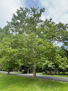 Sycamore (Platanus occidentalis), also known as American sycamore or buttonwood, is a large native tree renowned for its massive size, reaching heights of 75 to 100 feet or more. Its bark peels away and reveals white, tan, and green wood beneath. Sycamores have broad leaves with three to five lobes and produce round, fuzzy seed balls that hang from the branches throughout the winter. Sycamores play an important ecological role, providing habitat and food for various wildlife.