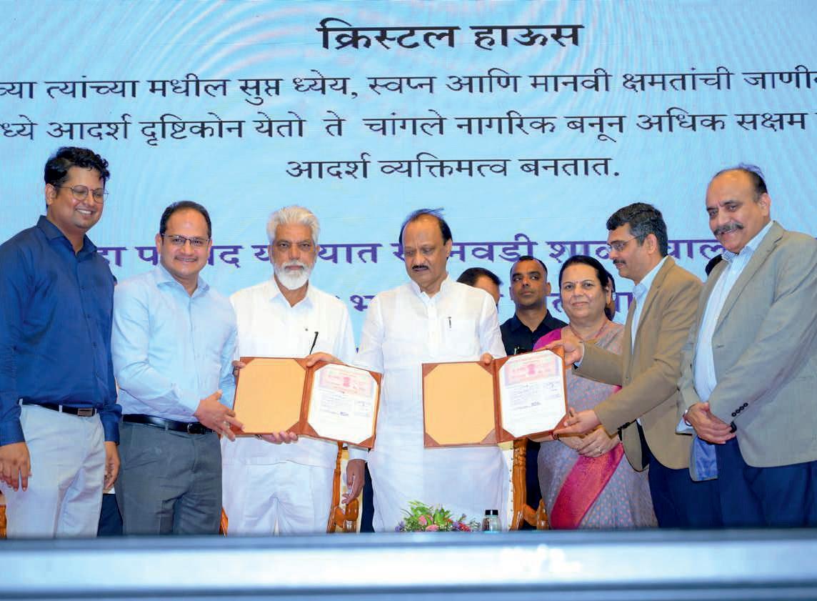 InthepicturefromLeft:Mr.RishikeshHuli(PensiveArchitectureCompany), Mr.JaisonCMathew(CEO,ChristelHouseIndia), Mr.DadajiBhuse (Hon’bleEducationMinsiter),Mr.AjitDadaPawar(Hon’bleDeputyChiefMinister), Ms.NeelamGorhe(Hon'bleDeputySpeaker,MaharashtraLegislativeCouncil), Mr.GajananPatil(Hon'bleCEO,PuneZillaParishad),Mr.RakeshBaweja(FormerSVP, FIAPL)