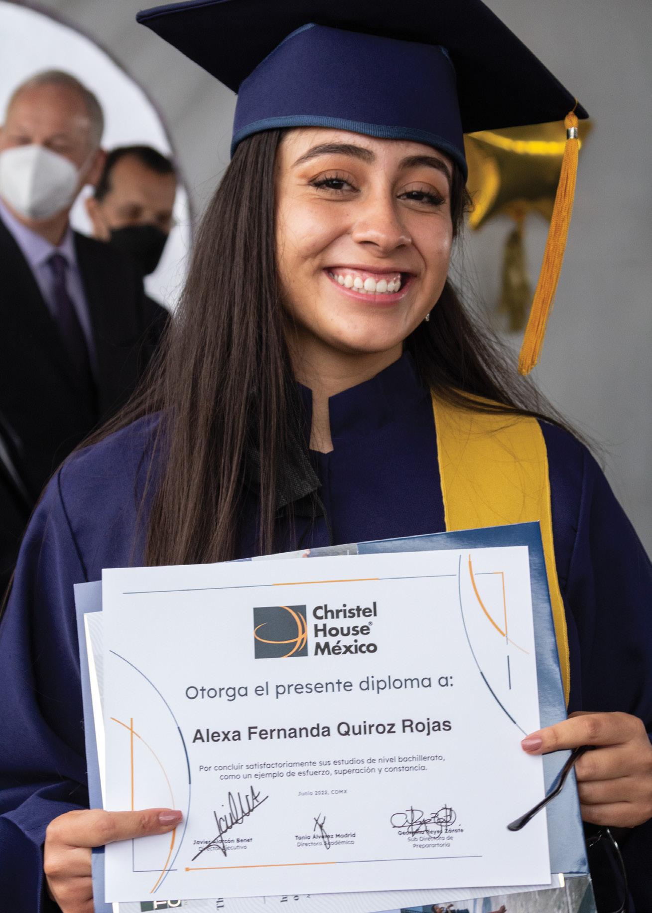 Personalidades entre las que destacan el CEO International de Christel House Bart Peterson, el Presidente del Consejo Directivo Gabriel Oropeza Gri th, el Director Ejecutivo Javier Alarcón, el Alcalde de Miguel Hidalgo Mauricio Tabe, directivos y miembros del consejo, inspiraron a los estudiantes con mensajes reconociendo su gran resiliencia ante las adversidades y los exhortaron a seguir adelante mostrando orgullosamente los valores de la institución: Respeto, Responsabilidad, Integridad e Independencia.