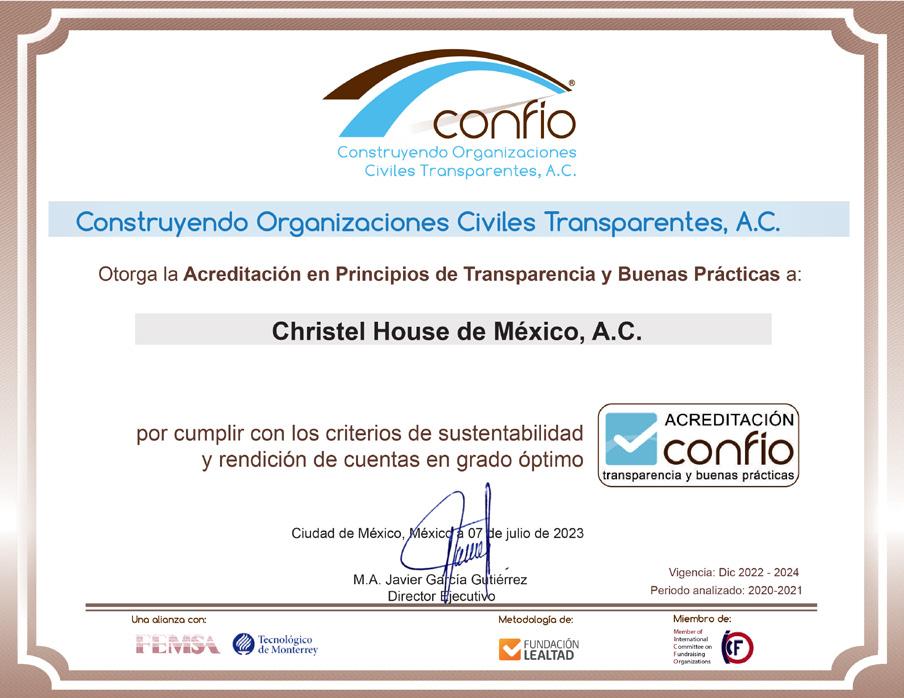 Con el enfoque integral en el bienestar físico, emocional y académico de los estudiantes, Christel House México está comprometida con su misión de ayudar a los niños y jóvenes en situación de pobreza a convertirse en personas autosu cientes y responsables en su entorno.