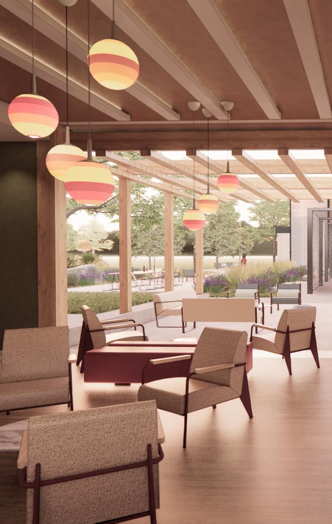 To stay on the concept, the colors were decided based on what is seen in the vineyard and on the vine itself, mixing muted and vibrant earthy tones. The color would be used as way finding through furniture and material accents. Focusing on the lighting aspect of the vines and canopy, I wanted to create play with the natural lighting that is coming into the buildings with different screening practices and translucent materials