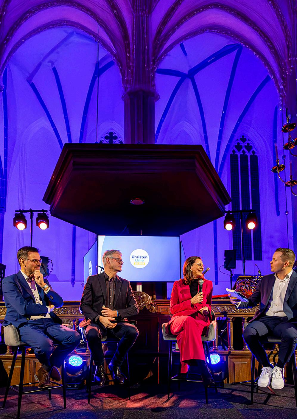 In een podiumgesprek reflecteerden André Rouvoet, Arie Slob en Mirjam Bikker op de afgelopen kwart eeuw van de ChristenUnie. Ze deelden persoonlijke verhalen, blikten terug op de reis die de partij heeft gemaakt en bespraken de uitdagingen die de partij in het verleden heeft doorgemaakt en nog steeds aangaat.