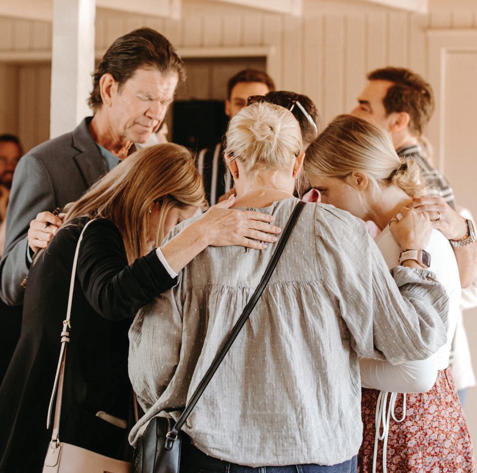 Orando por la familia Inverso (Tracy, Jonathan y Taylor) el domingo que fueron por primera vez a Christ Fellowship Boca Raton.
