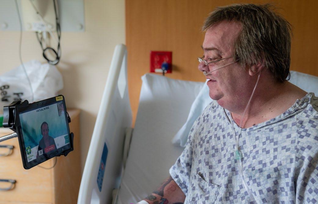Virtual nurses manage responsibilities that can be completed remotely, such as admissions, medication histories, discharge documentation, patient and family education about diagnoses and medications, pain reassessments and more. They communicate directly with patients and family members via tablets and with onsite nurses and providers. Nurses at the bedside are responsible for nursing care that can’t be completed virtually, including physical head-to-toe assessments, IV starts, wound care and more.