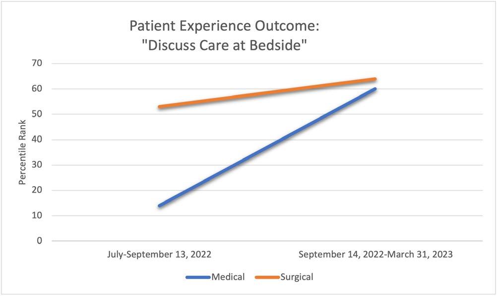 After only a few months of the pilot program, patient feedback in areas like symptom comprehension and care discussion at the bedside significantly improved in both pilot units. Additionally, readmission rates decreased in both units, while the average length of stay decreased in our medical unit. As of June 28, 2023, virtual acute care nursing had expanded to more than 500 beds, exceeding our goal of 500 beds by this time.