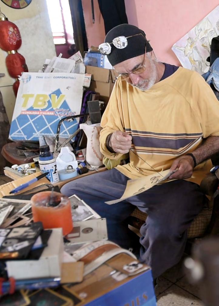 “El Buzo” - the diver as he is called by Havanans tirelessly treks the city streets in search of his junk, his rejected objects. For more than twenty years, like one of Agnès Varda’s gleaners, he has been collecting suitcases, boxes, photographs, and newspaper clippings whose destinies he intertwines, both literally and figuratively. Not to rehabilitate them, but because he detects a real potential for extrapolation, for marvelous narrative possibilities, in these objects.