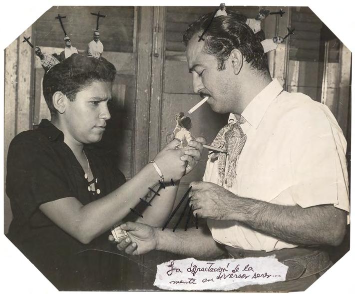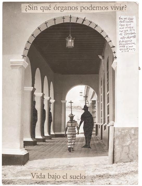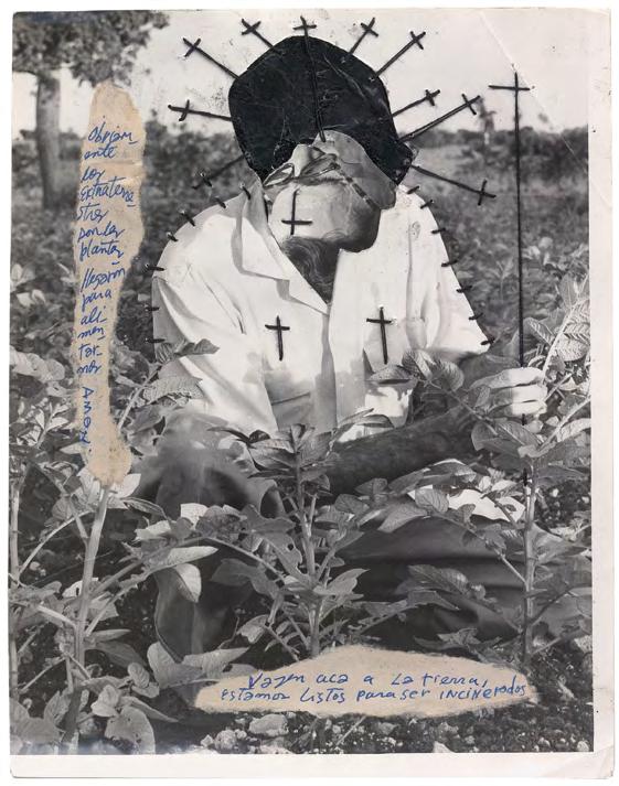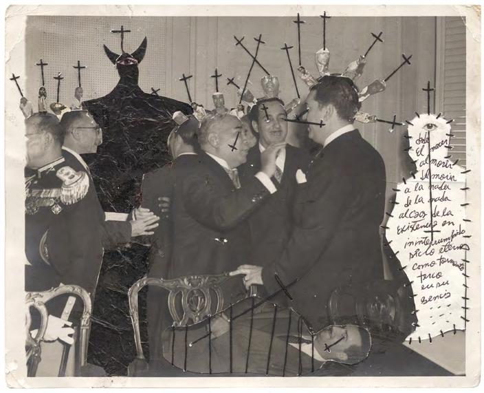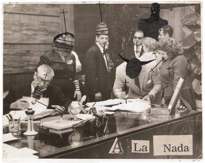 Cadi procède autant par hybridation que par concrétion, collant ici, découpant là, cousant ceci avec cela. Boltanskien dans son usage mémoriel de la photographie, warholien lorsqu’il coud des greffons d’images entre eux, El Buzo cherche avant tout à révéler ce que ces images cachent.