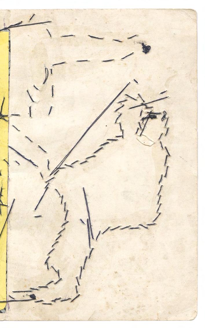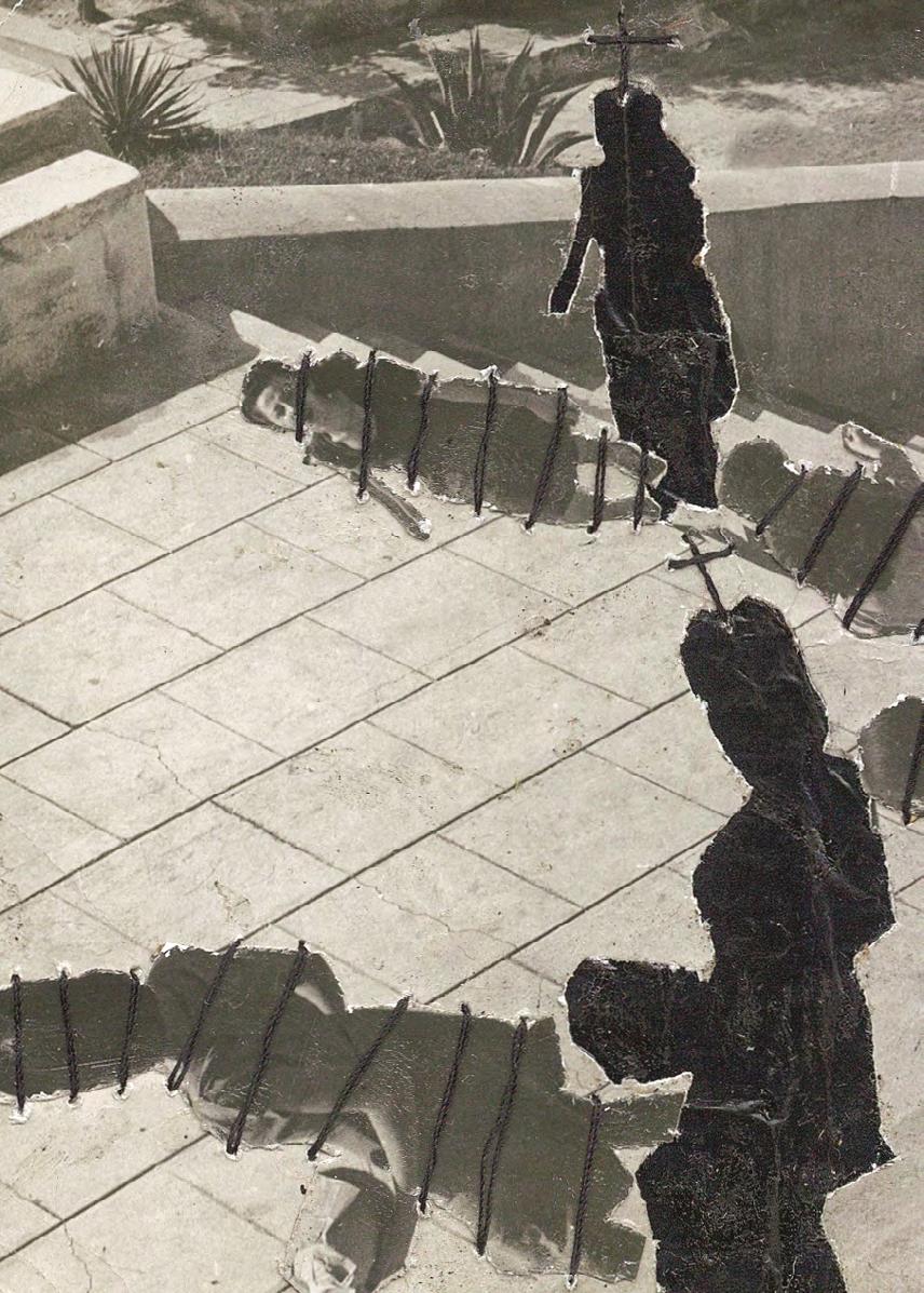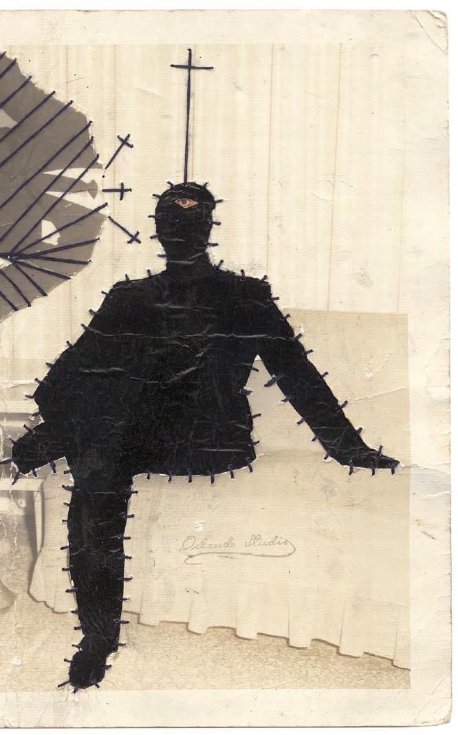 untitled, 2019, ink, collage and sewing on photography, 24 x 18 cm