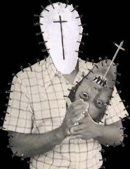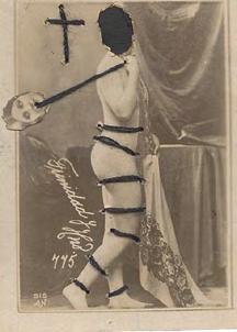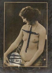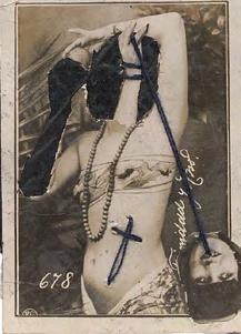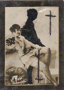 L’image érotique est la plus récente trajectoire de la retouche photographique d’El Buzo. La femme y est presque toujours lacée, partiellement ou totalement ; un appel au bondage, au shibari. La croix pend de mains qui pincent, fixe des tiers qui mordent, émerge de visages souriants, lascifs ou absents. Tantôt cette croix couvre deux seins, tantôt elle surplombe la scène. Comme en rappel.