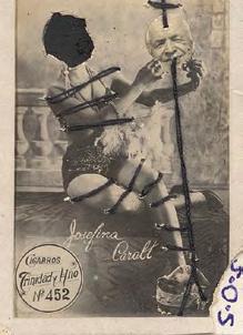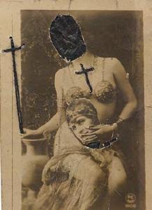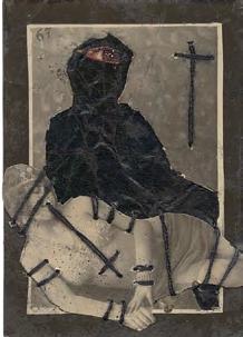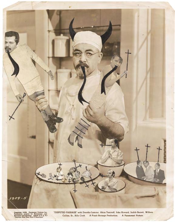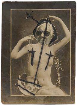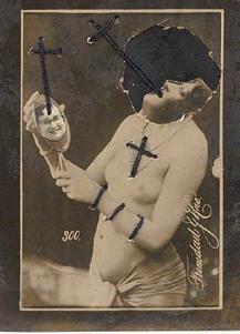 À première vue, même s’il se livre dans ses photomontages - à la manière d’une Hannah Höch - à une satire sans compromis des normes bourgeoises et religieuses, ses sujets demeurent continuellement en prise avec nos affres les plus archaïques.