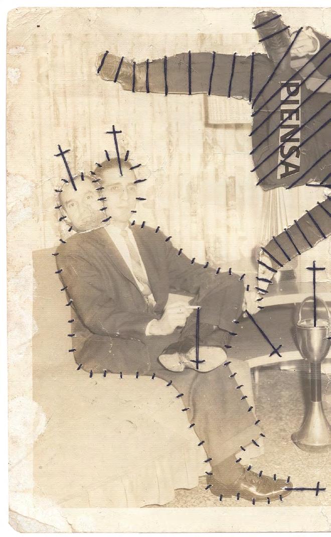 untitled, 2019, ink, collage and sewing on photography, 25 x 20 cm