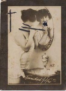 Cadi sometimes treats the portraits he contemplates to a re-composition. In a schizophrenic movement, he dives into the past and inserts Januses. Their disconcerting squinting, which breaks the illusions of a unified health, also prevents a frontal relationship to the image.