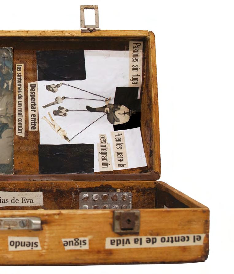 untitled, 2020, ink, collage, photography and sewing on object assembly, 43.7 x 78 x 18.2 cm