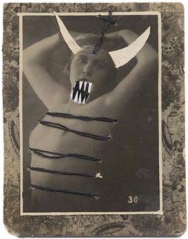 At first sight, even if in his photomontages he gives in in the style of Hannah Höch - to a satire that doesn’t compromise with bourgeois and religious norms, his subjects continue to have a grip on our most archaic torments.