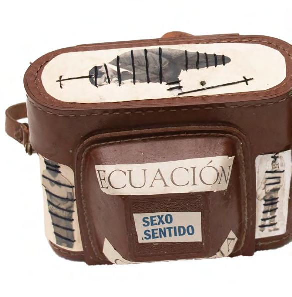 untitled, 2018, collage, ink and sewing on camera, 10 x 13.3 x 7.5 cm