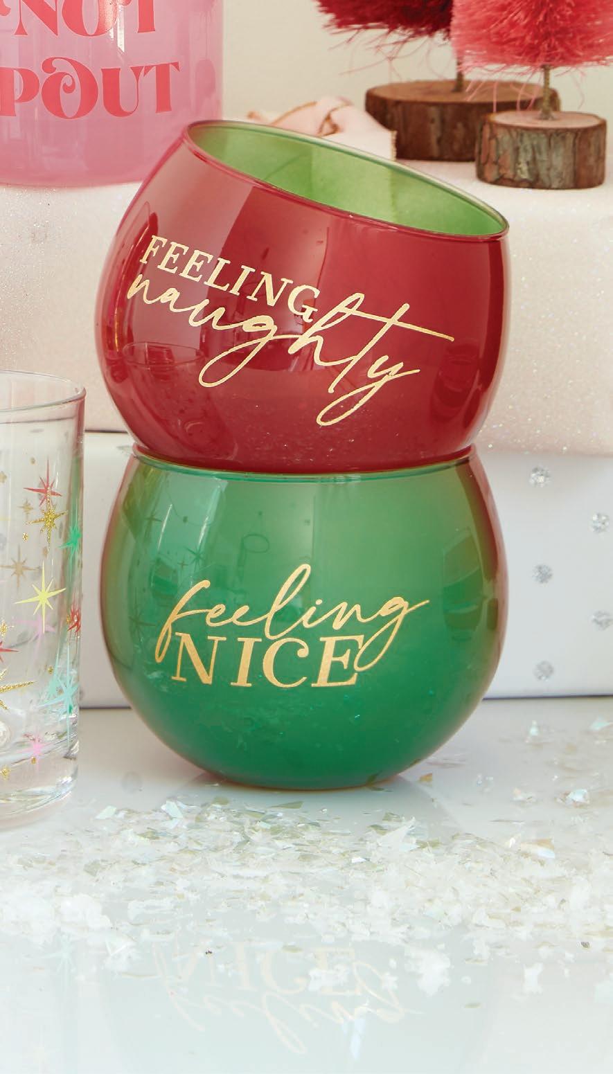 Feeling Naughty + Feeling Nice Roly Poly Glass 10-04859-473 Glass | 13 oz | 3" H | Hand Wash Only