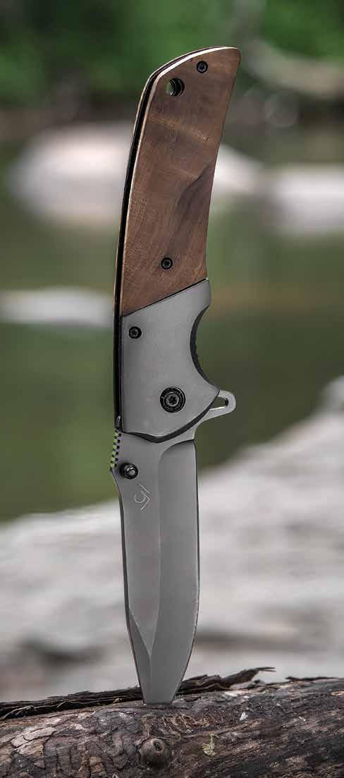 The TimberBlade seamlessly combines timeless design with rugged utility, featuring a sleek wood handle and a sharp stainless-steel blade. Ready for the trail or the open road, the TimberBlade is a reliable tool for everyday carry.