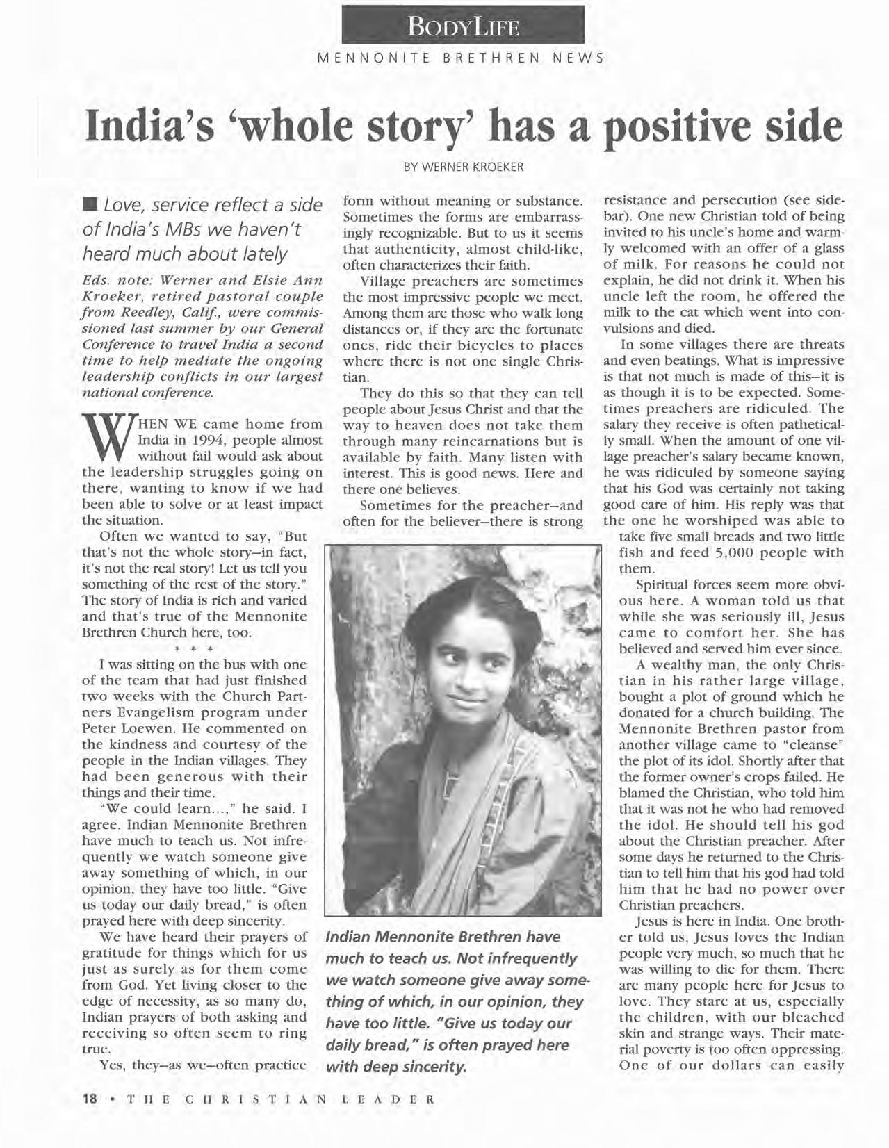 PRINTING: The Christian Leader is printed on recyclable paper by Mennonite Press, Newton, Kansas.