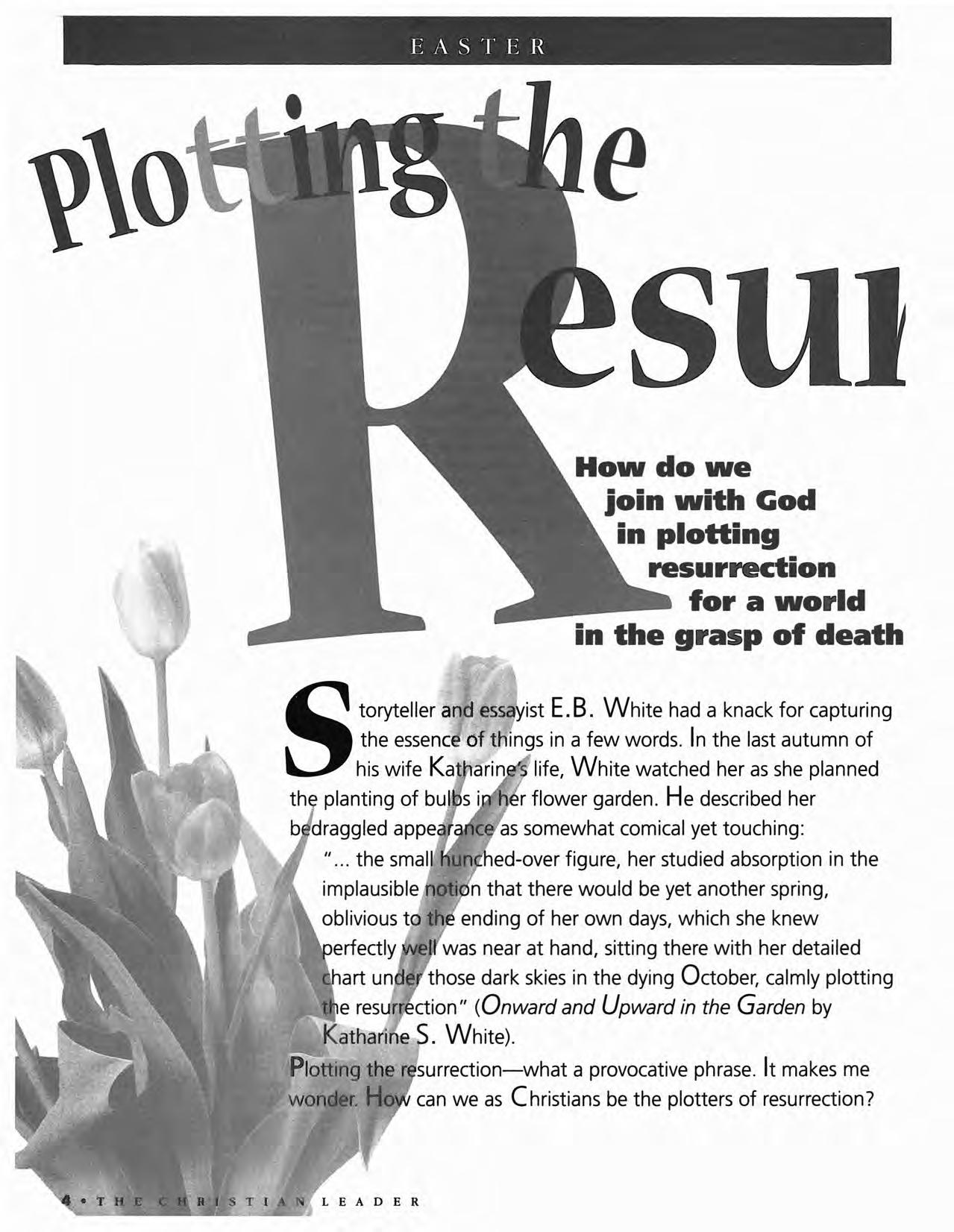 Jesus' life, death and resurrection are central to our life. In fact, Paul says "if Christ has not been raised, our preaching is useless and so is your faith" (I Cor. 15:14). I hope one or two of the articles in this issue will challenge or help you to "plot the resurrection" in your community.