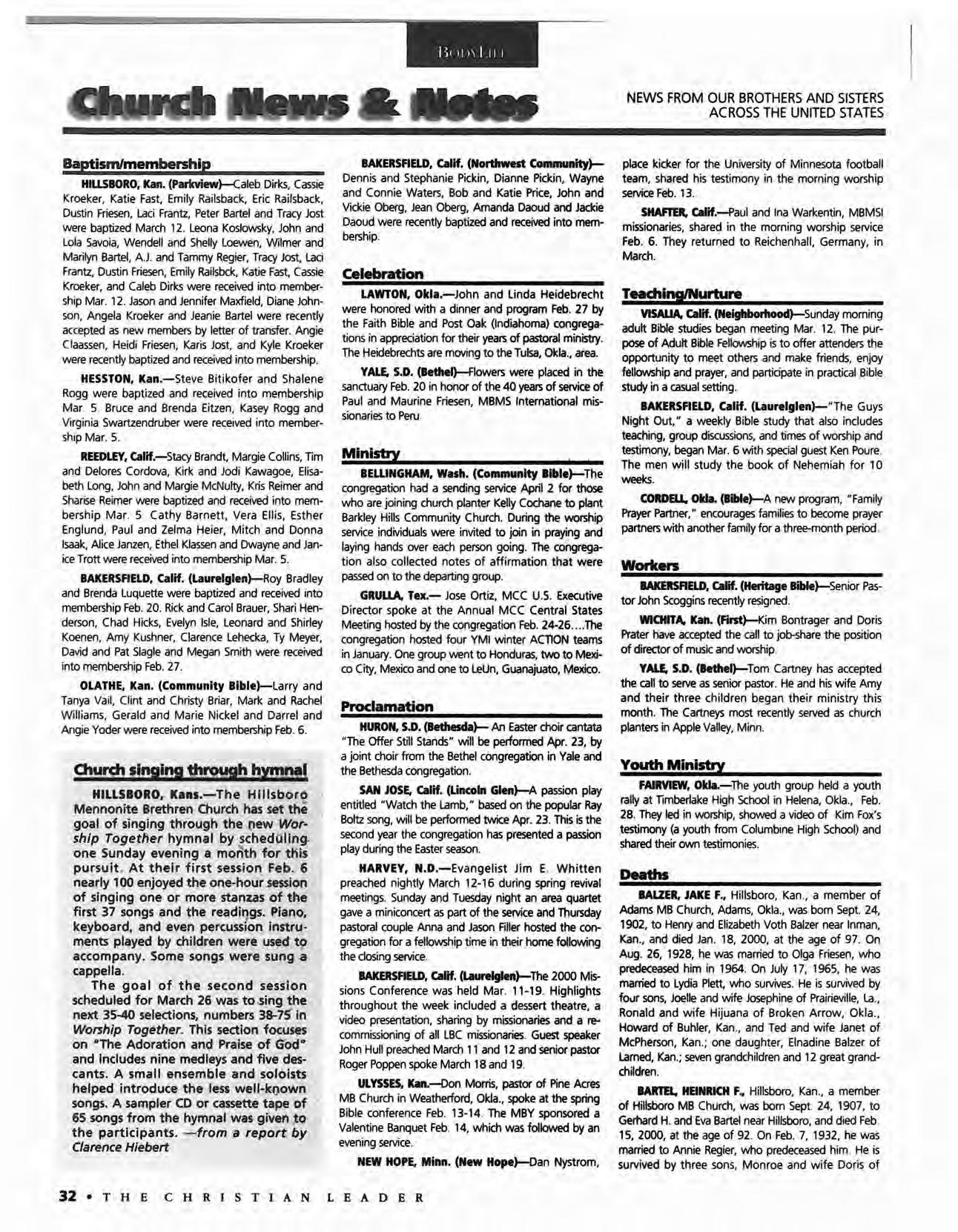 Postmaster: Send address changes to the Christian Leader, Box V, Hillsboro, KS 67063. Periodicals postage paid at Hillsboro, Kansas.