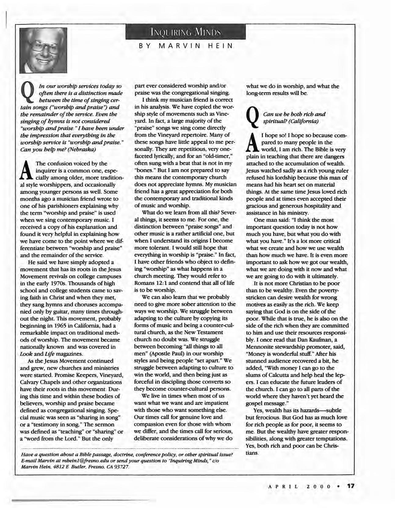 Based on Marvin Hein's column "Inquiring Minds, " page 17