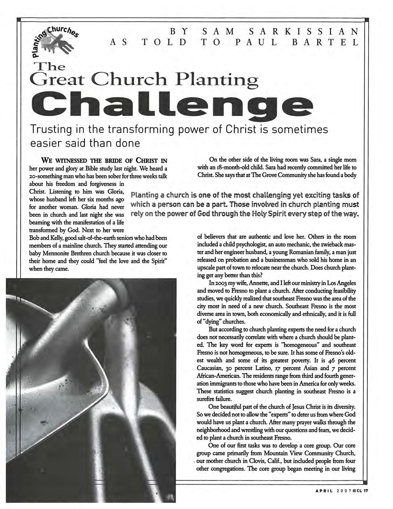Throughout the process of planting a church, fear and trust do battle in the mind of the church planter. What kind of reception will I get when I knock on this stranger's door? Who will be in church Sunday? But when we rely on God and are guided by the Holy Spirit, we witness the mighty and transforming power of God in our own lives and the lives of the people who come to know him.