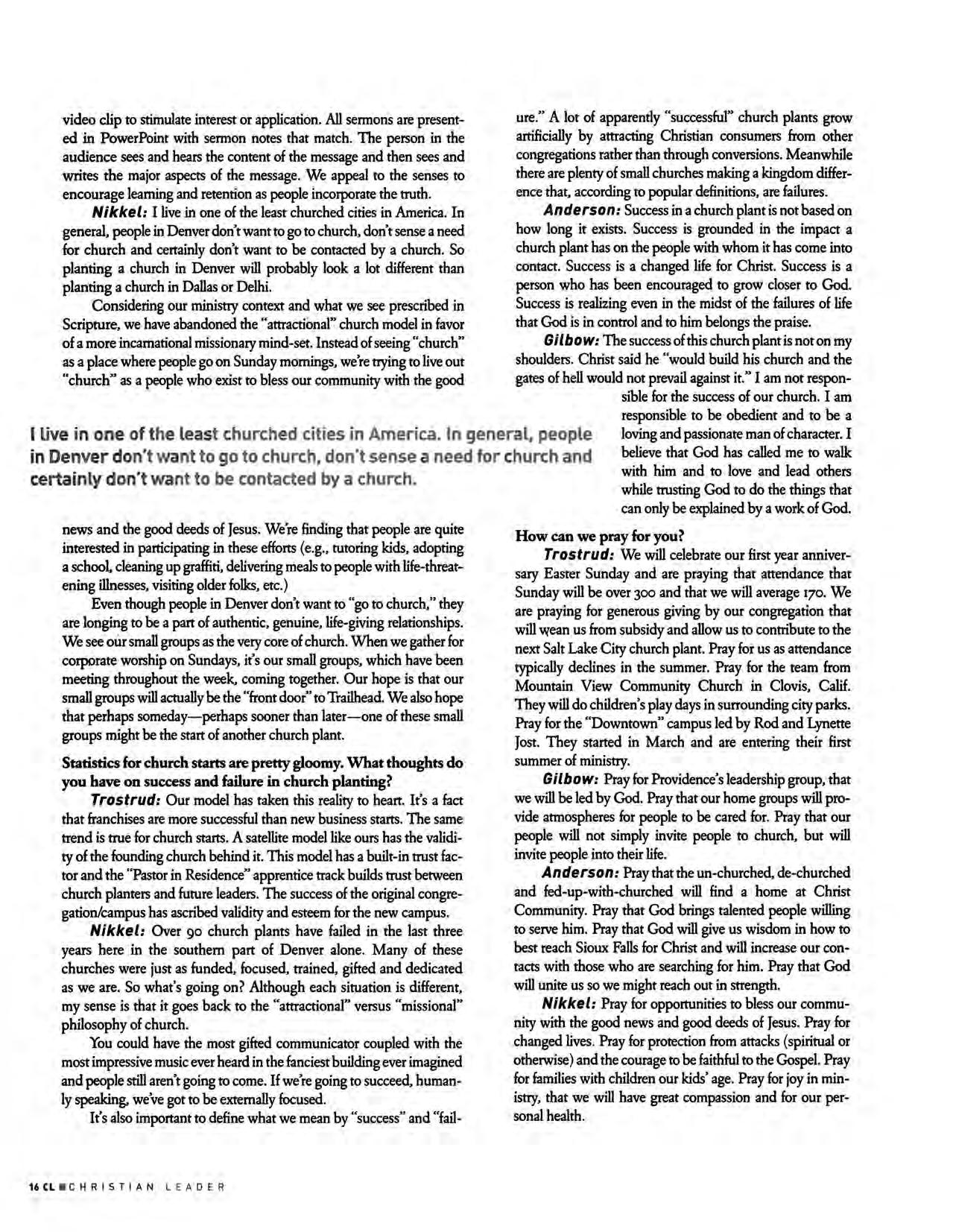 13 AN INSIDER'S LOOK AT CHURCH PLANTING A CL Conversation