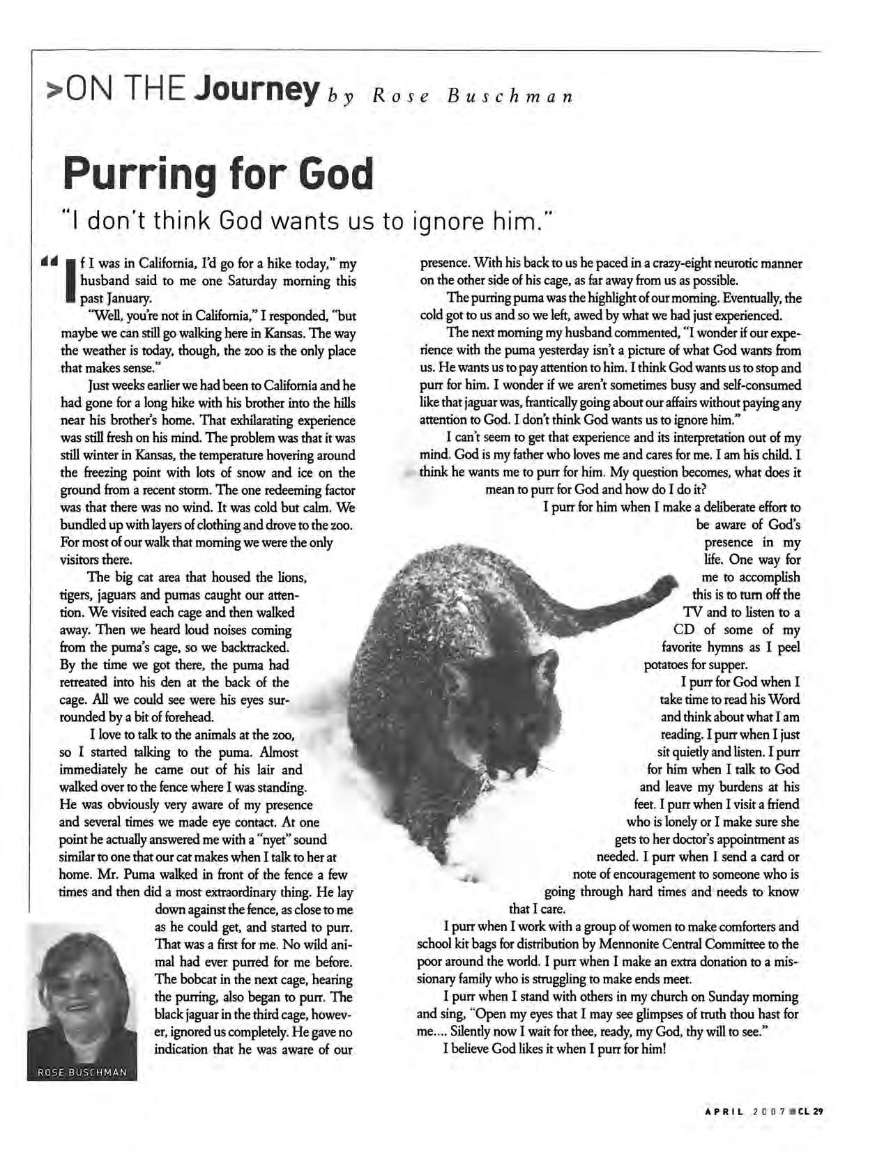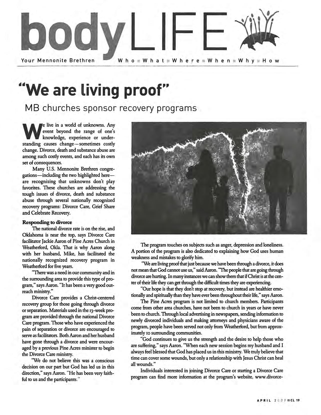 Blaine, Wash. (Birch Bayl-In connection with a series of Easter sermons by Pastor Rick Eshbaugh, the church also offered five-week Bible studies, a personal devotion guide and weekly Lenten suppers. Manhattan, Kan.-The church hosted a Peace Vigil for Iraq March 16, timed to coincide with a prayer vigil and march in Washington, D.C. to mark the fourth anniversary of the war in Iraq.