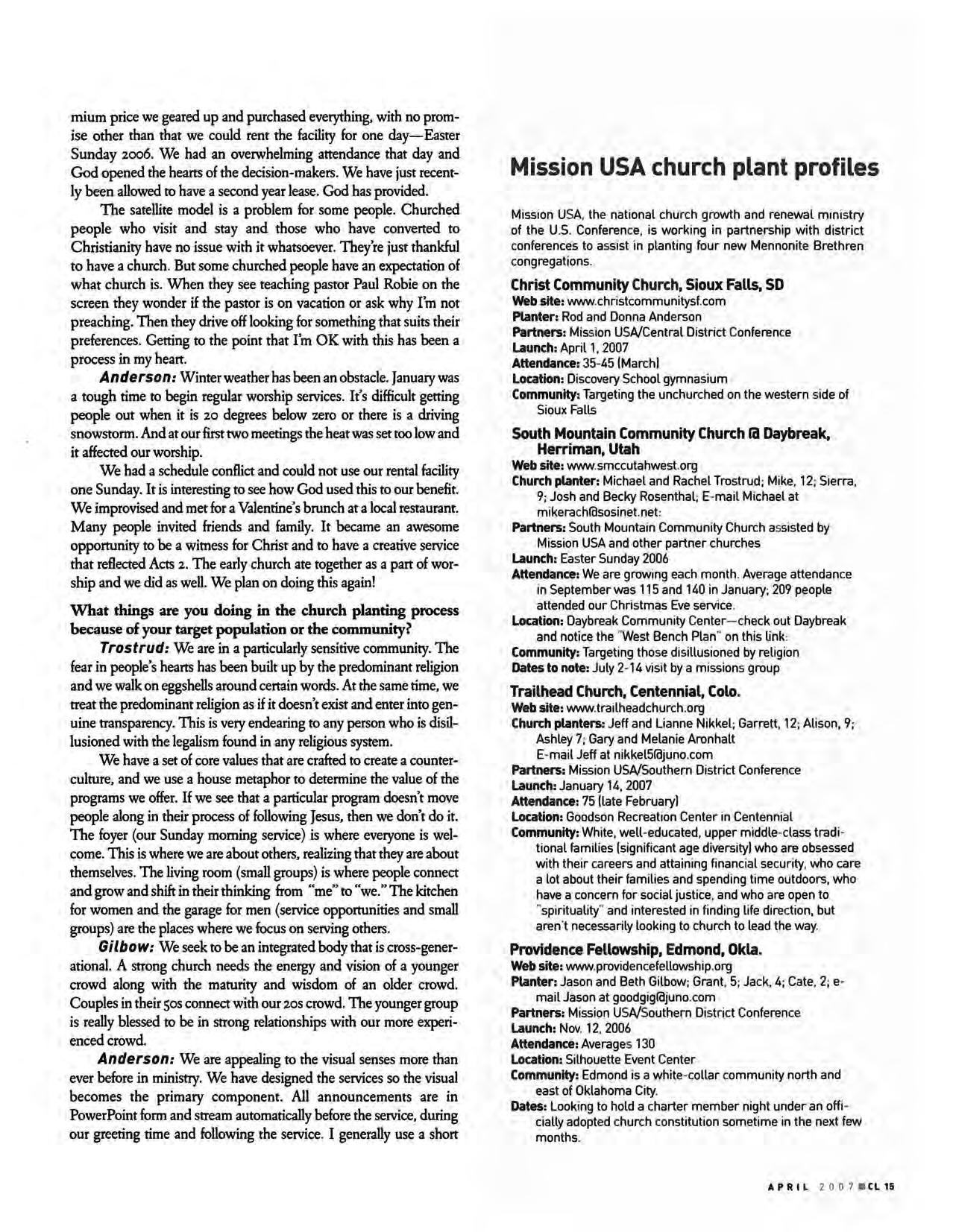 MANDATE The Chris t ian Lea der liSSN 0009- 51491 is publi shed monthly by the U S Con ference of Mennoni te Brethren Churches The Christian Leader see ks to infor m Menn oni te Brethren m embers and churc hes of the events, activities decisi on s and iss ues of their denom inat ion and to instruct inspire and initiate dialogue so members will aspire to be faithfu l disci ples of Christ as un derstood in the evangelicaVAnabaptist theologica l tra dition