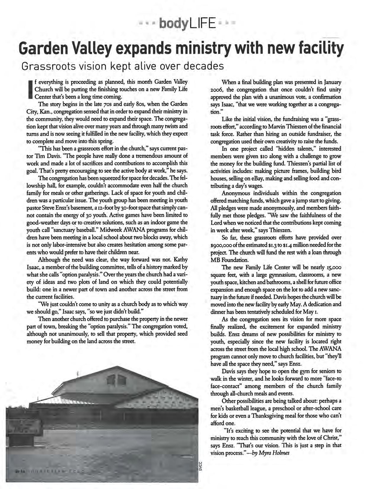 22 > Garden Valley expands ministry with new facility 23 > Exploring church-to-church relationship