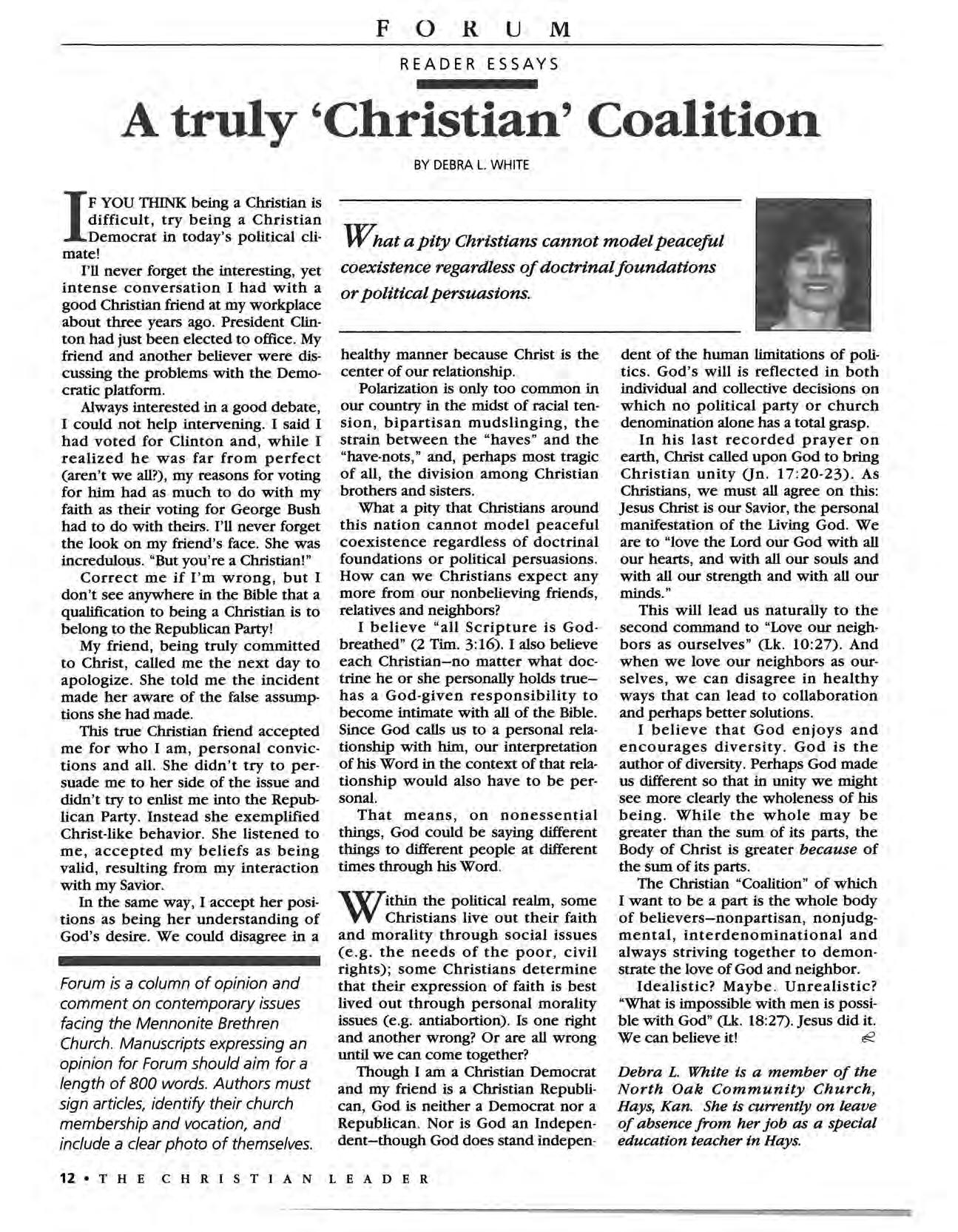 A truly 'C hristian' Coalition: by Debra L. White, 58 :12 :12