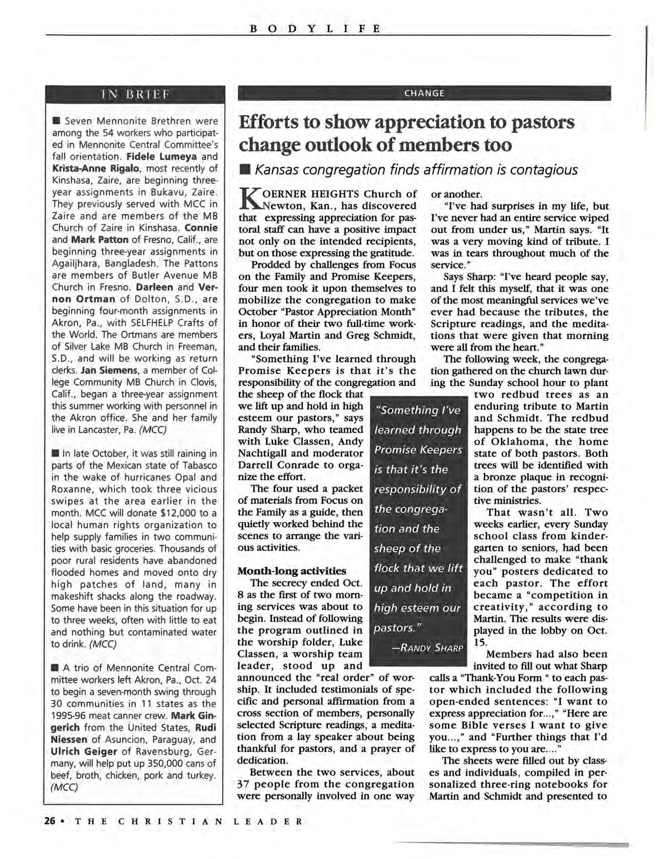 V OERNER HEIGHTS Church of .&.Newton, Kan., has discovered that expressing appreciation for pastoral staff can have a positive impact not only on the intended recipients, but on those expressing the gratitude.