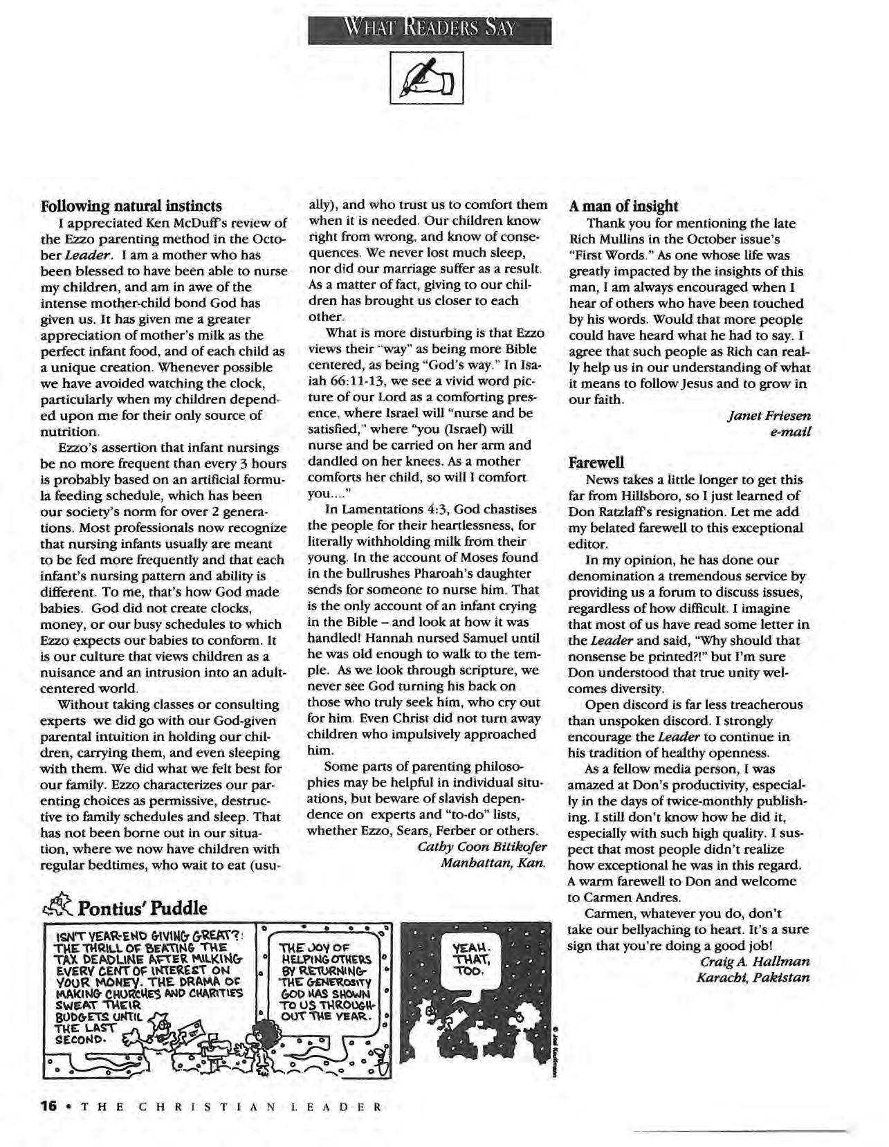 But, like many of us, I can get lost in holiday activities and squeeze out the celebration of]esus' birth - the event that led to my Salvation. The articles in this issue help us to refocus on the true purpose of Christmas.