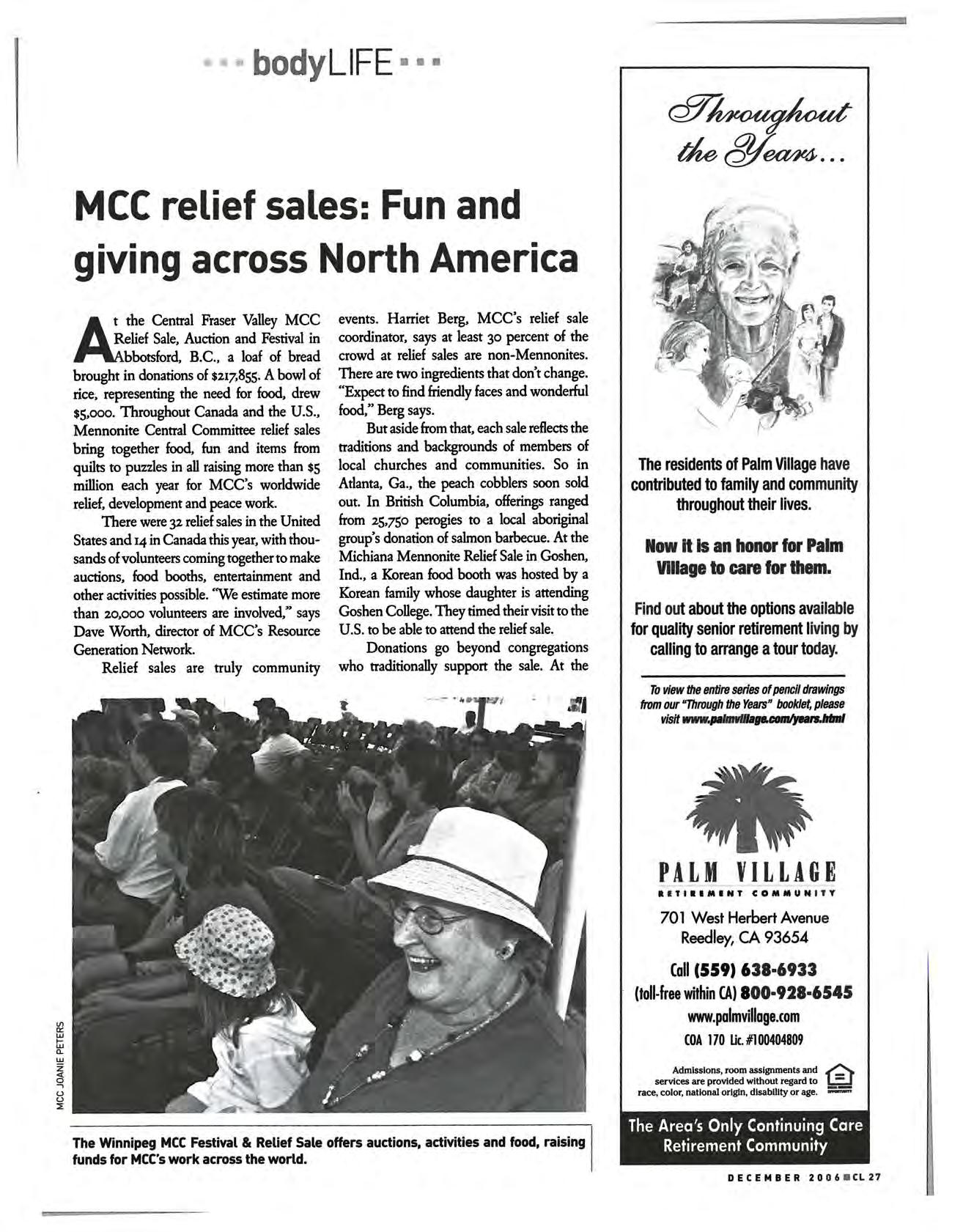 • Jan. 21, 2007 - World Fellowsh ip Sunday sponsored by Mennonite World Conference