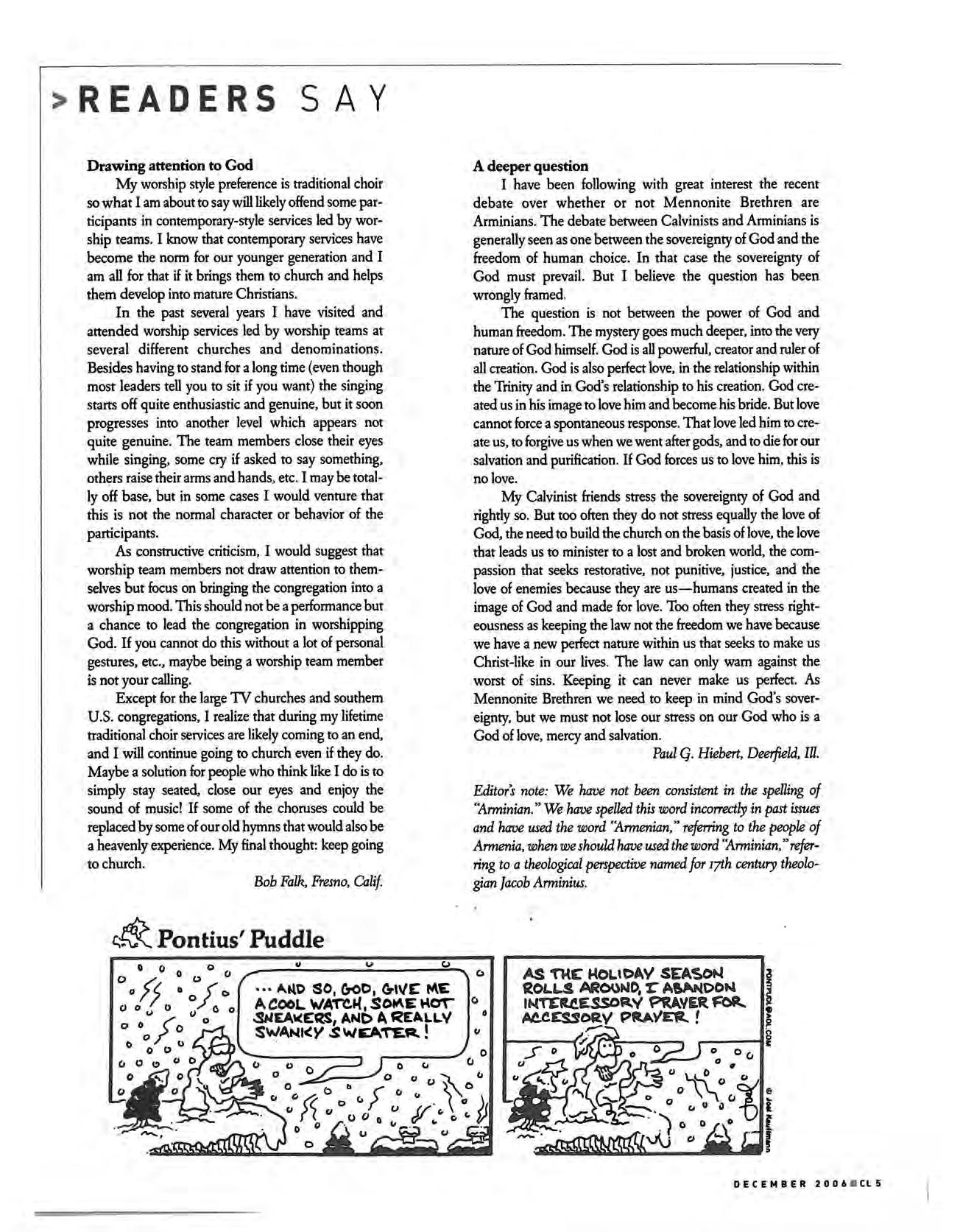 I have been following with great interest the recent debate over whether or not Mennonite Brethren are Arminians. The debate between Calvinists and Arminians is generally seen as one between the sovereignty of God and the freedom of human choice. In that case the sovereignty of God must prevail. But I believe the question has been wrongly framed