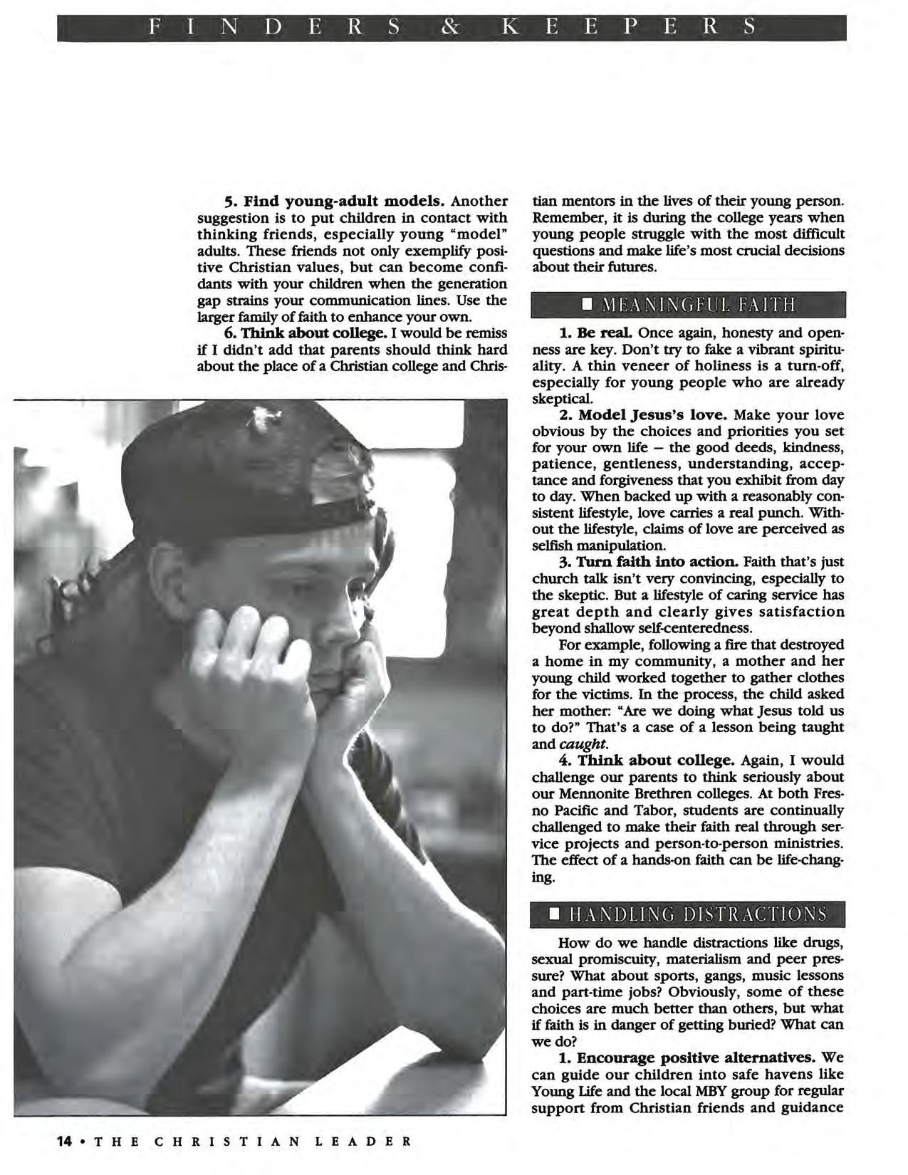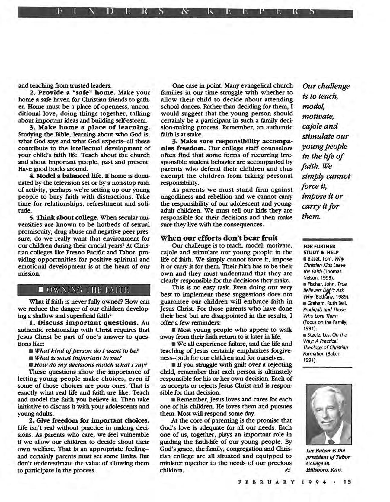 youth. The college years may be the most critical ones for setting spiritual direction, but for many adult believers the back door of faith is never nailed permanently shut.