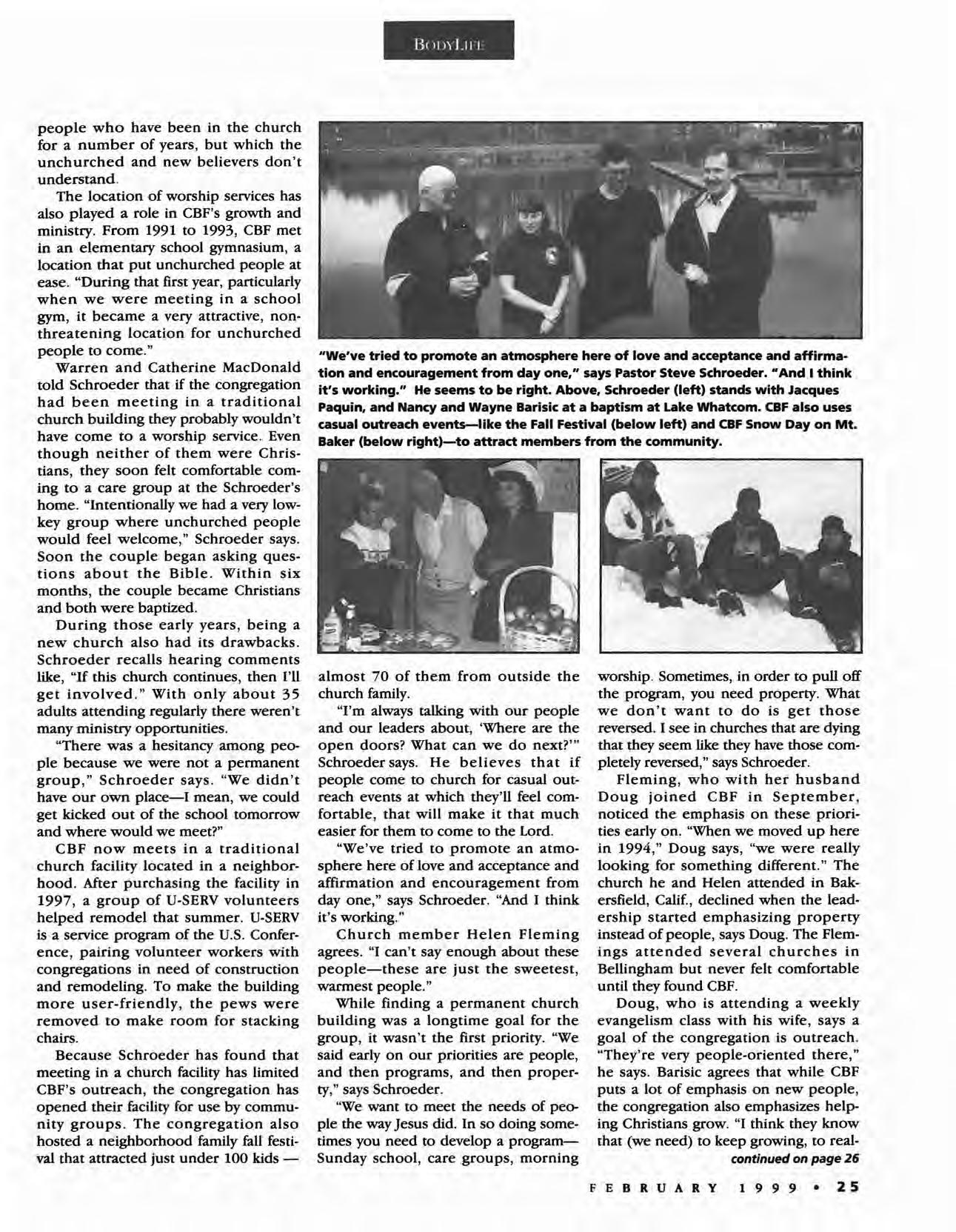 The Christian Leader (ISSN 0009-5149) is published monthly by the U.S. Conference of Mennonite Brethren Churches, 315 5. lincoln, Hillsboro, KS 67063. The Christian Leader seeks to inform Mennonite Brethren members and churches of the events, activities, decisions and issues of their denomination, and to instruct, inspire and initiate dialog so members will aspire to be faithful disciples of Christ as understood in the evangelical/Anabaptist theological tradition. However, the views expressed in this publication do not necessarily represent the position of the Christian Leader, the Board of Communications or the Mennonite Brethren Church.
