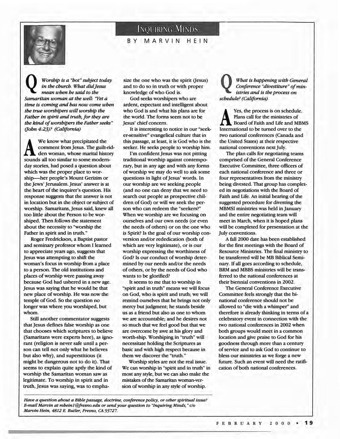 Based on the first question of Marvin Hein's "Inquiring Minds" column, page 19