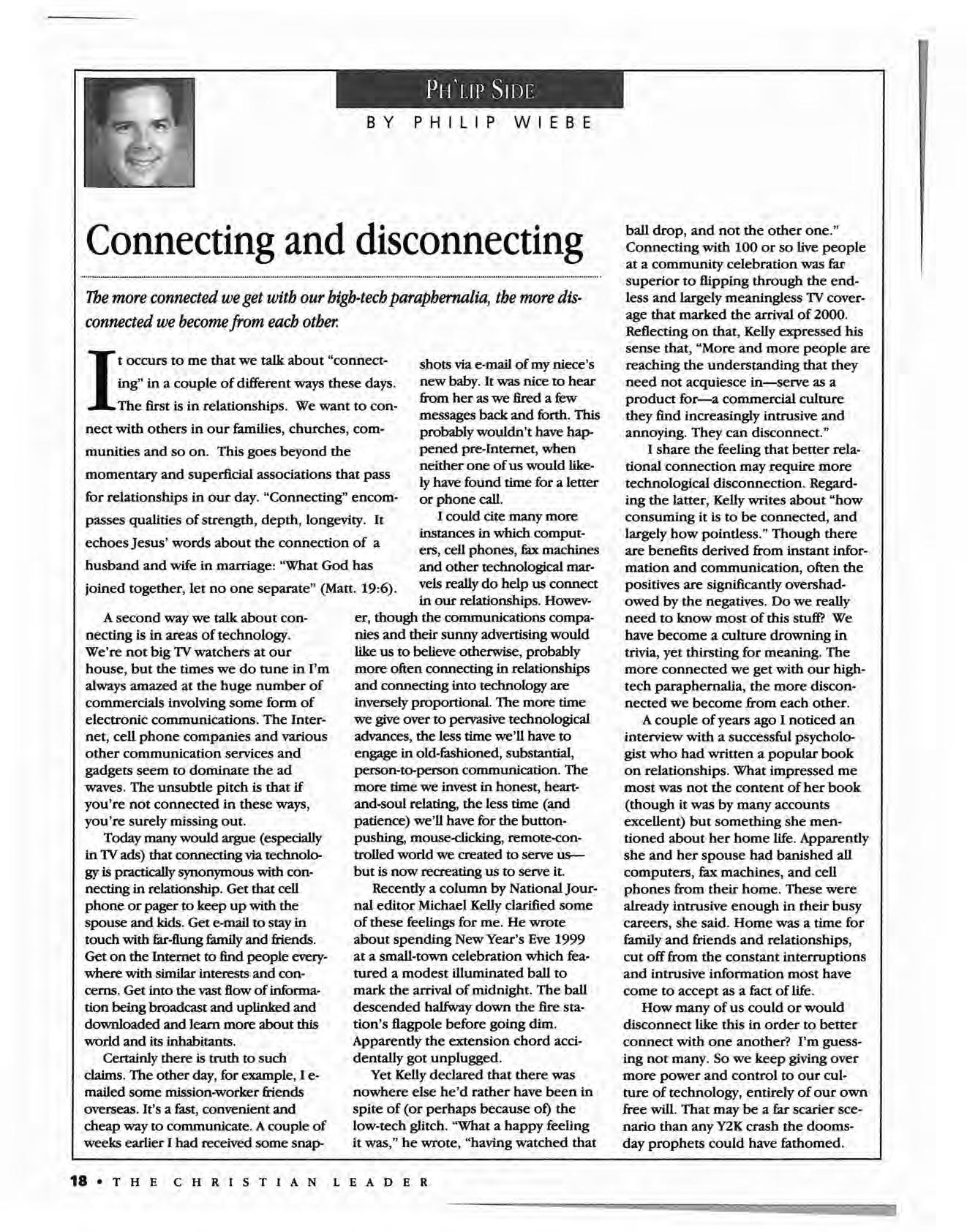 1 How does our culture suggest to us that connecting via technology also connects us in relationships?