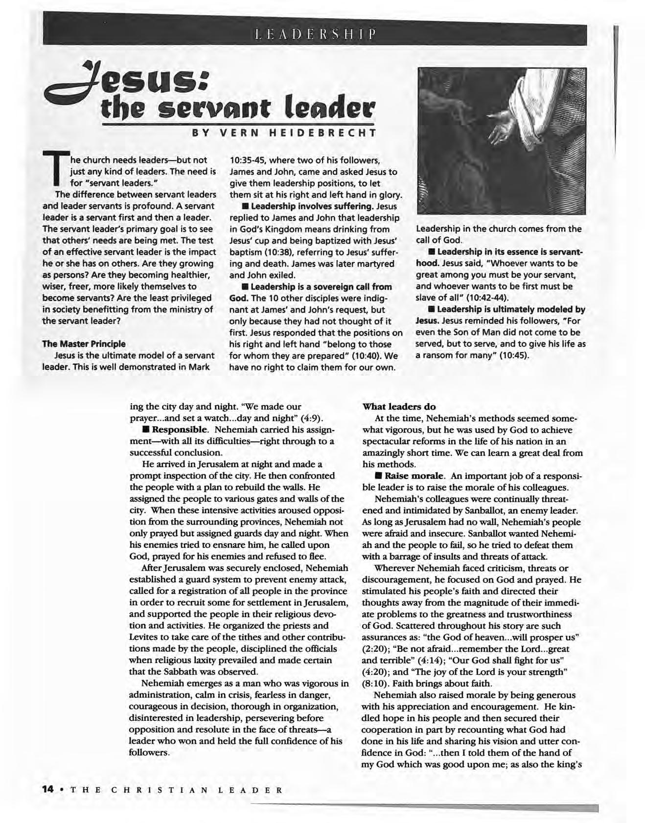 The church needs leaders-but not just any kind of leaders. The church needs servant leaders, like Jesus. BY VERN HEIDEBRECHT